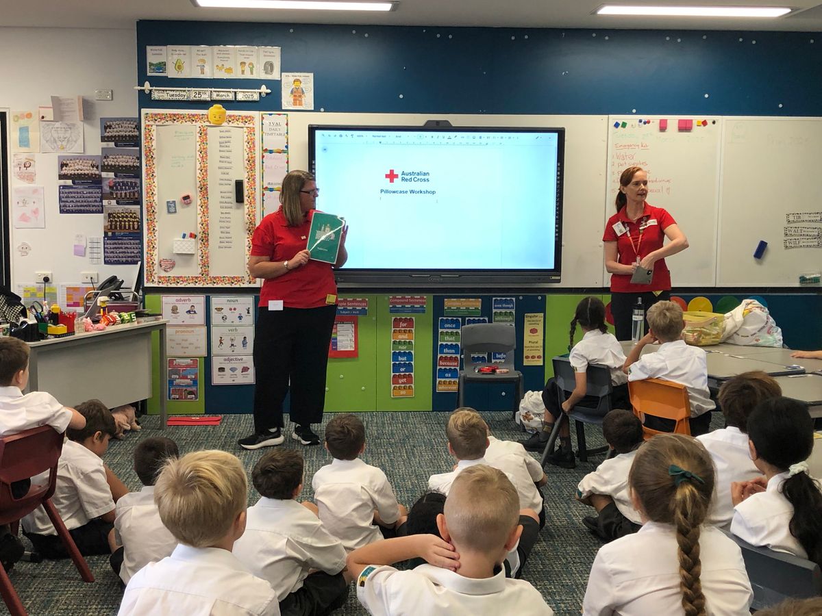 On Tuesday last week, the Year 3 students were lucky enough to have the Red Cross visit to deliver their Pillowcase Program. This program is aimed at helping children prepare for, cope with and respond to an emergency. Because of where we live and go to school, we're experts!