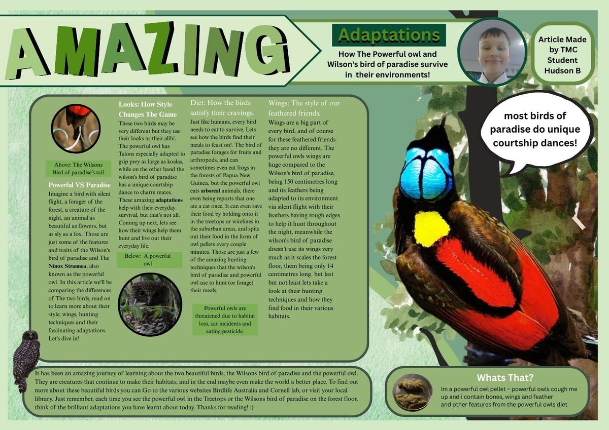 Our Year 5 students have been working hard on their own National Geographic Kids–style articles, and the results are nothing short of amazing! These projects have brought together English, Science, and Art, with students combining research and scientific knowledge with clear writing and creative design. From striking layouts to carefully crafted explanations, each article reflects both effort and imagination. We are proud of the way students have blended creativity with accuracy, and we hope you love their work as much as we do.