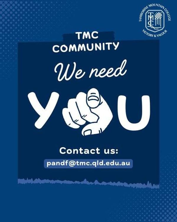 Jump in and get involved by emailing our P&F and join our Facebook group! Email: pandf@tmc.qld.edu.au Facebook: TMC P&F